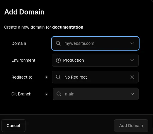 - Cliquez sur “Add Domain”