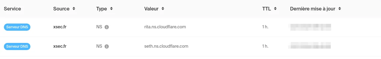 - Mettez à jour les nameservers de votre domaine dans le tableau de bord de votre bureau d’enregistrement pour pointer vers les nameservers de Cloudflare.