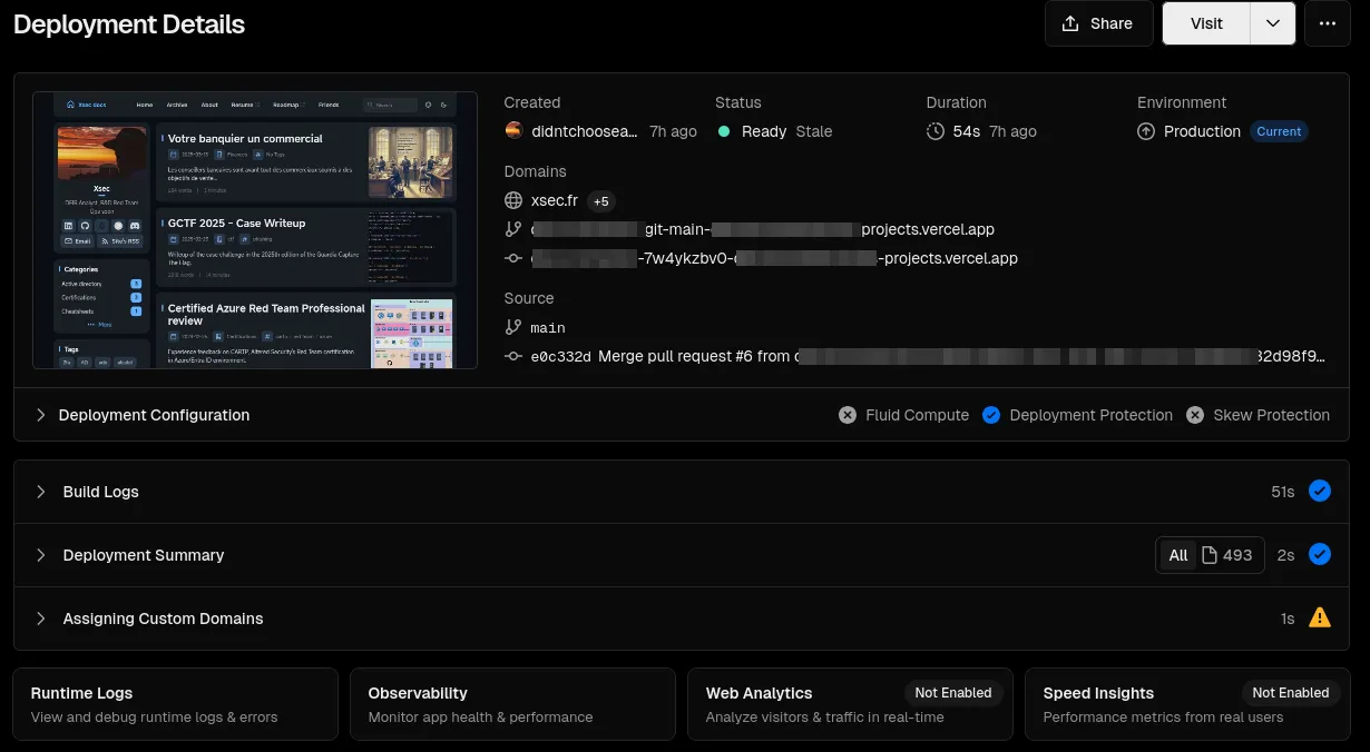 - Vérifiez les journaux de construction dans le tableau de bord Vercel