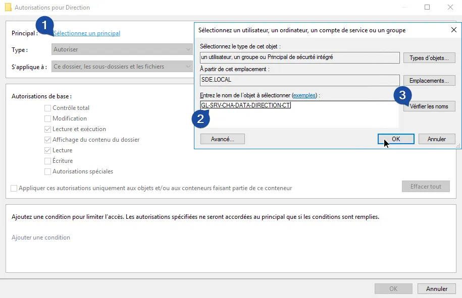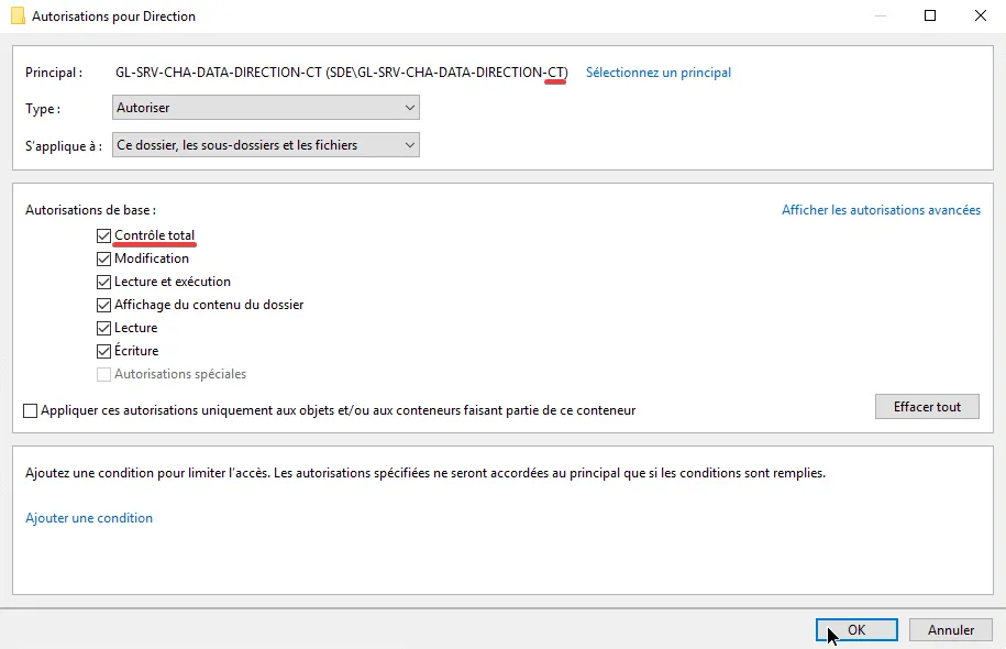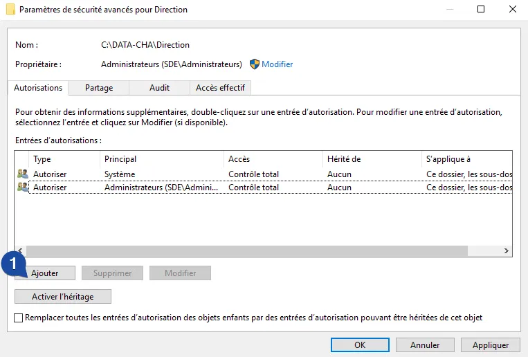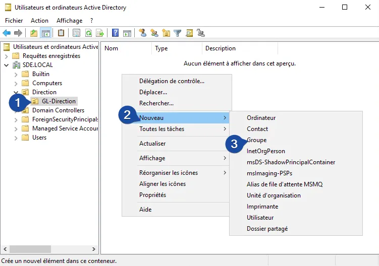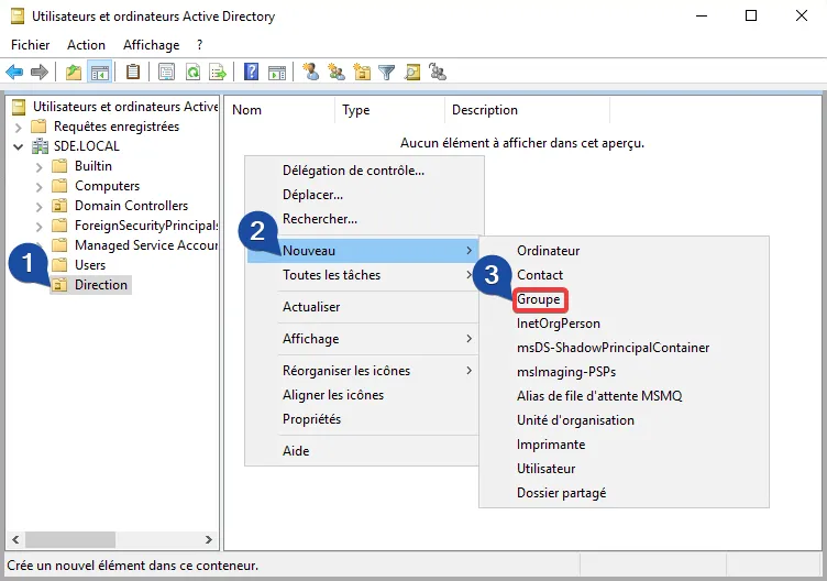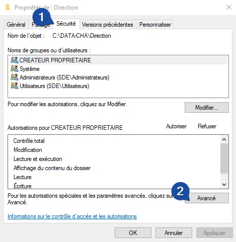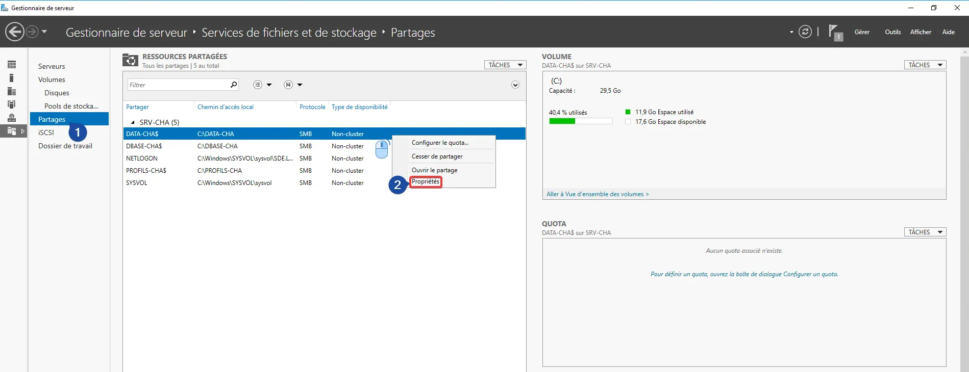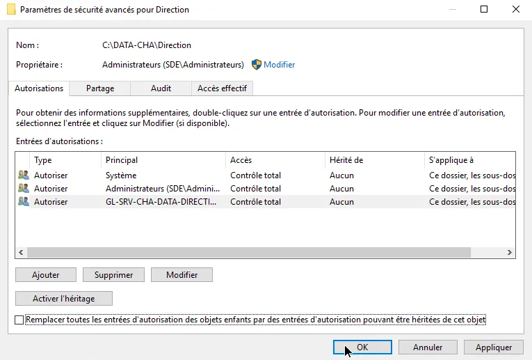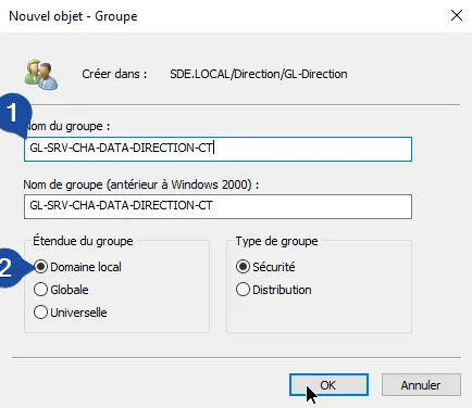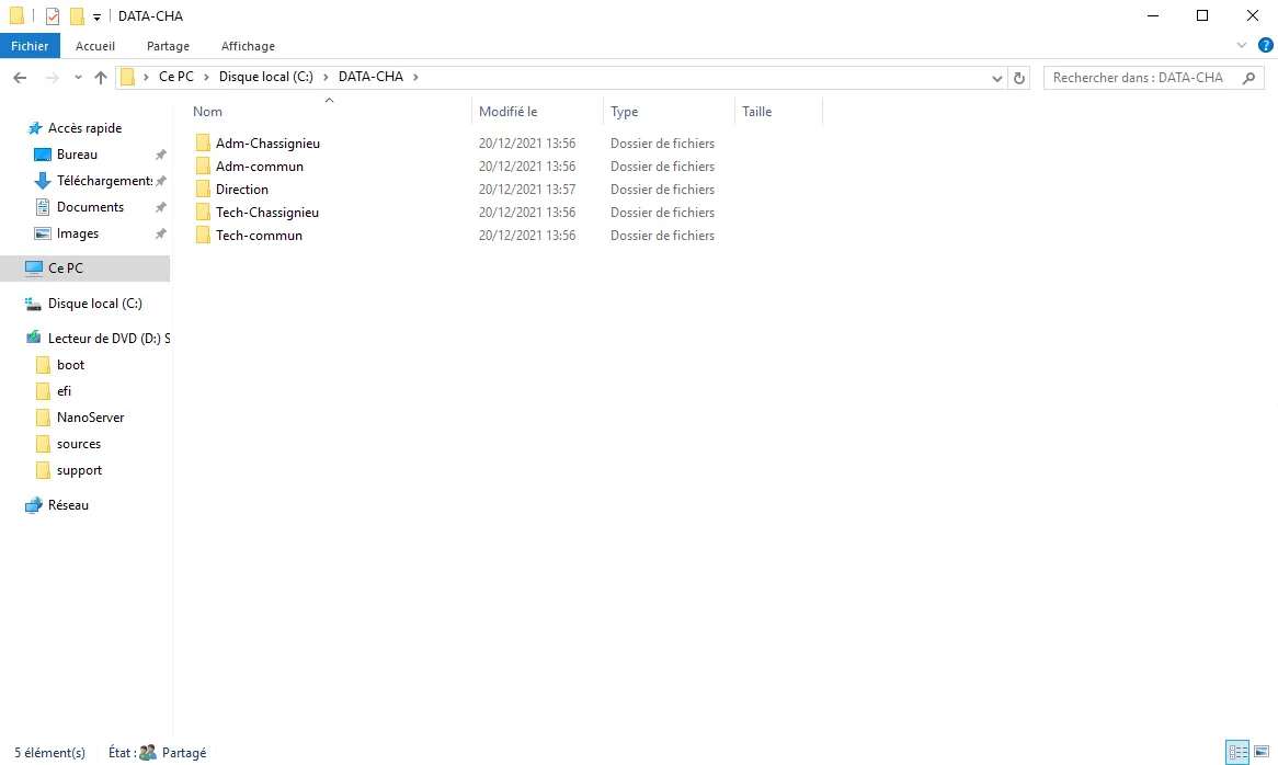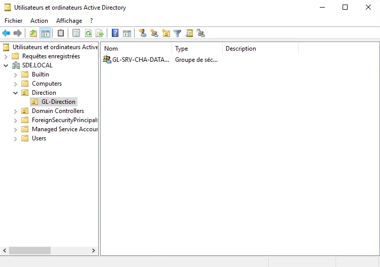 โถ๏ธSRV-BLAโโโ ๐DATA-BLAโ โโโ ๐Adm-Blandinโ โ โโโ ๐GL-SRV-BLA-DATA-ADM-BLANDIN-FCโ โ โโโ ๐GL-SRV-CHA-DATA-ADM-BLANDIN-Rโ โโโ ๐Tech-Blandinโ โโโ ๐GL-SRV-BLA-DATA-TECH-BLANDIN-FCโโโ ๐PROFILES-BLAโโโ ๐DBASE-BLAWe will use the above topology for this entire practical work.