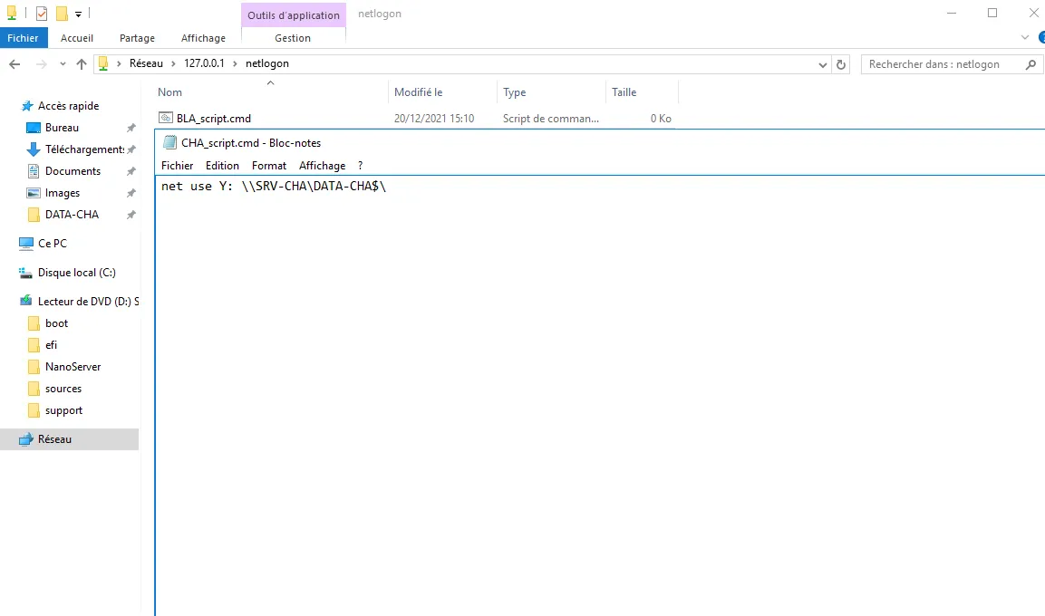 net use Y: \\SRV-CHA\DATA-CHA$net use Z: \\SRV-BLA\DATA-BLA$Example: Letโs take the example of a user in Blandin: