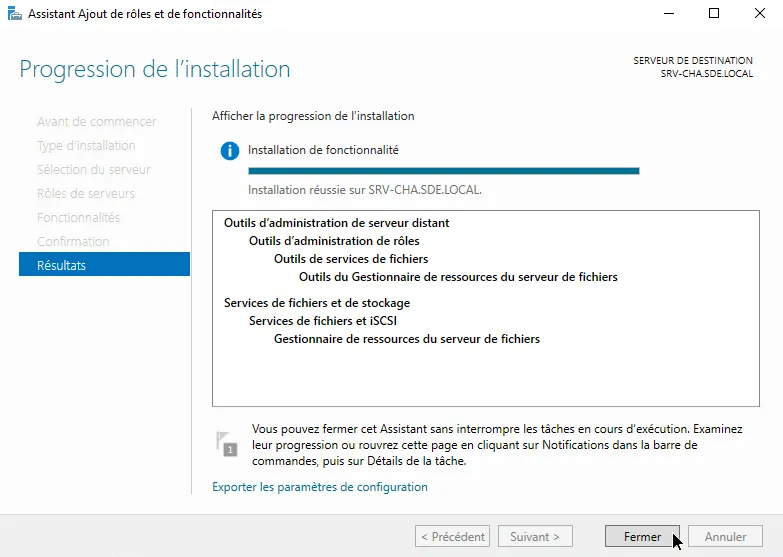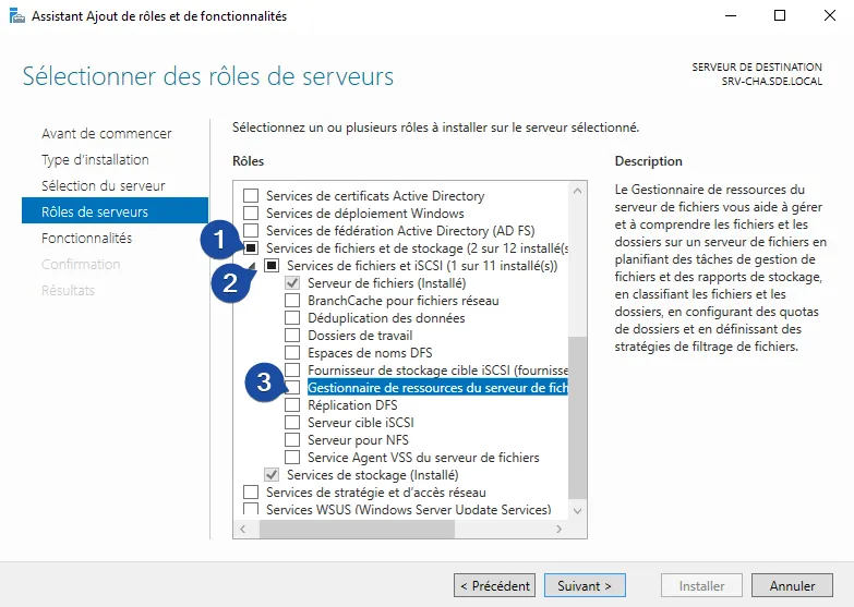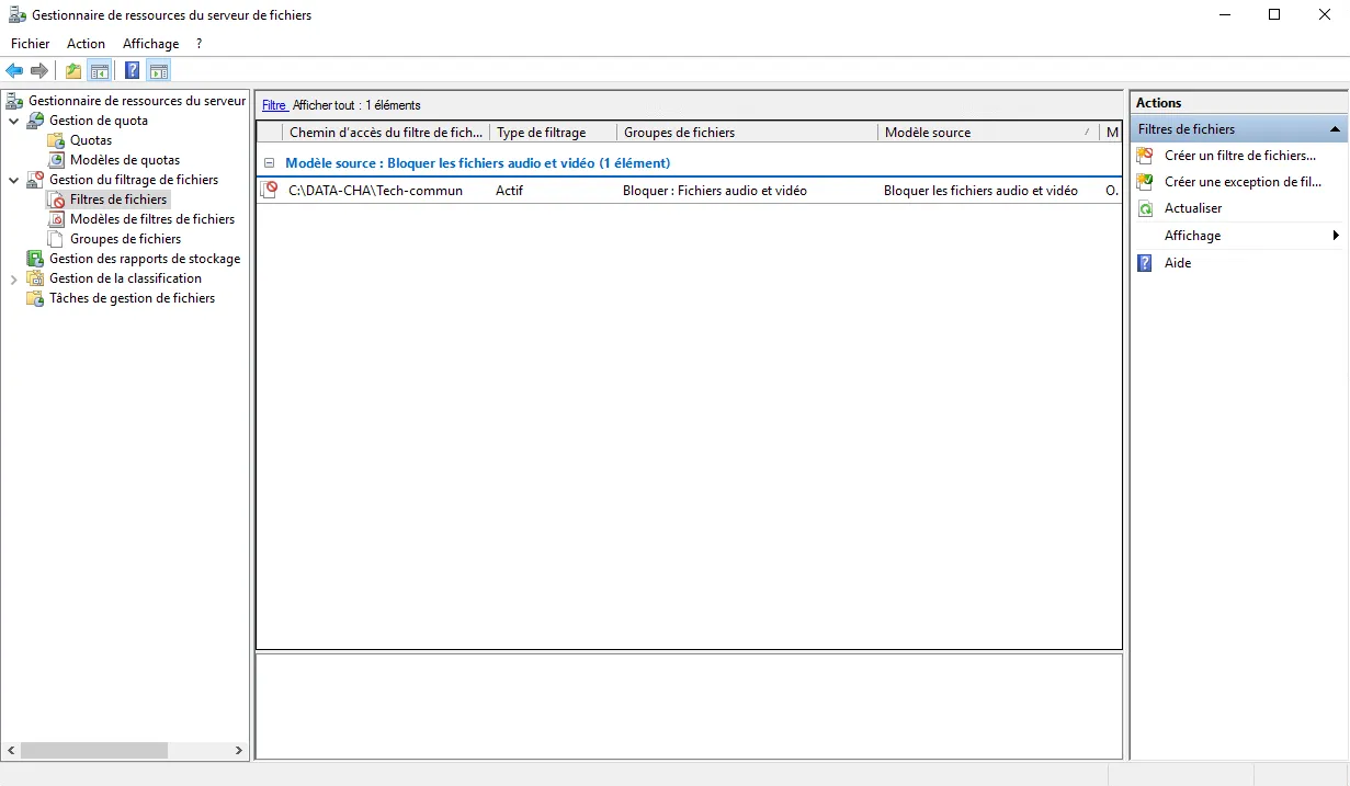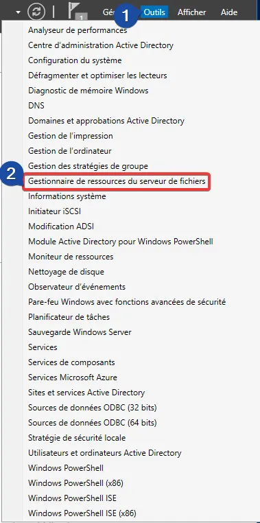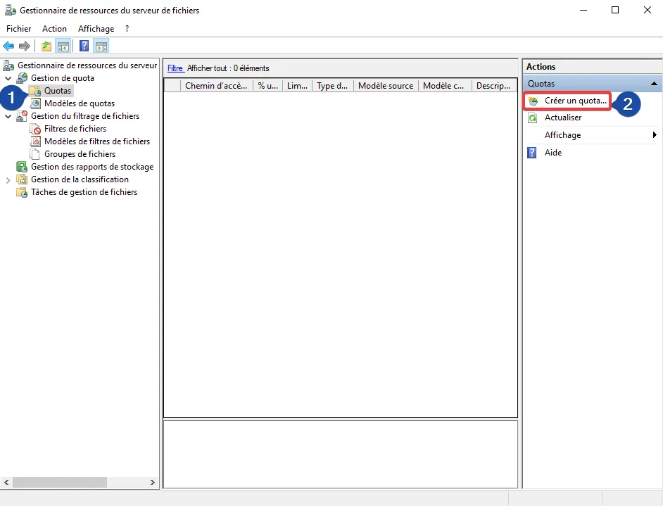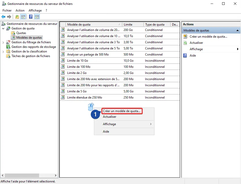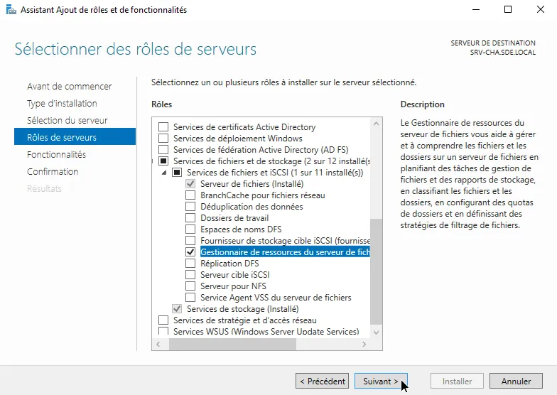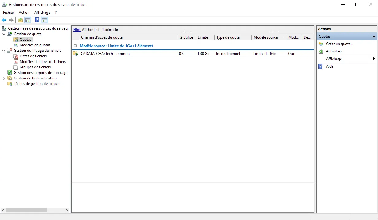 We will apply “quotas” to folder shares on the Chassignieu server as an example.